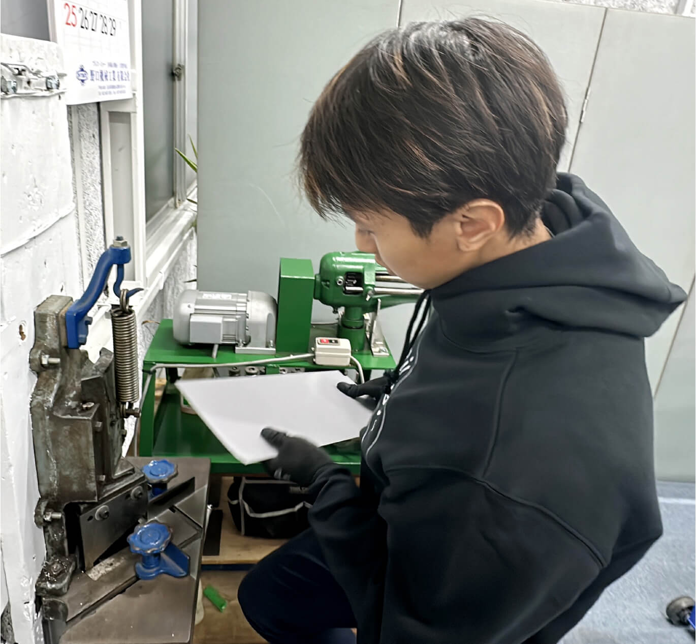 仕上げの板金工事はミリ単位の正確さが求められる作業。初めは難しく感じるかもしれませんが、経験を積むうちに丁寧に取り組む姿勢が身に付いていくので、職人として大きな強みになるはずですよ!